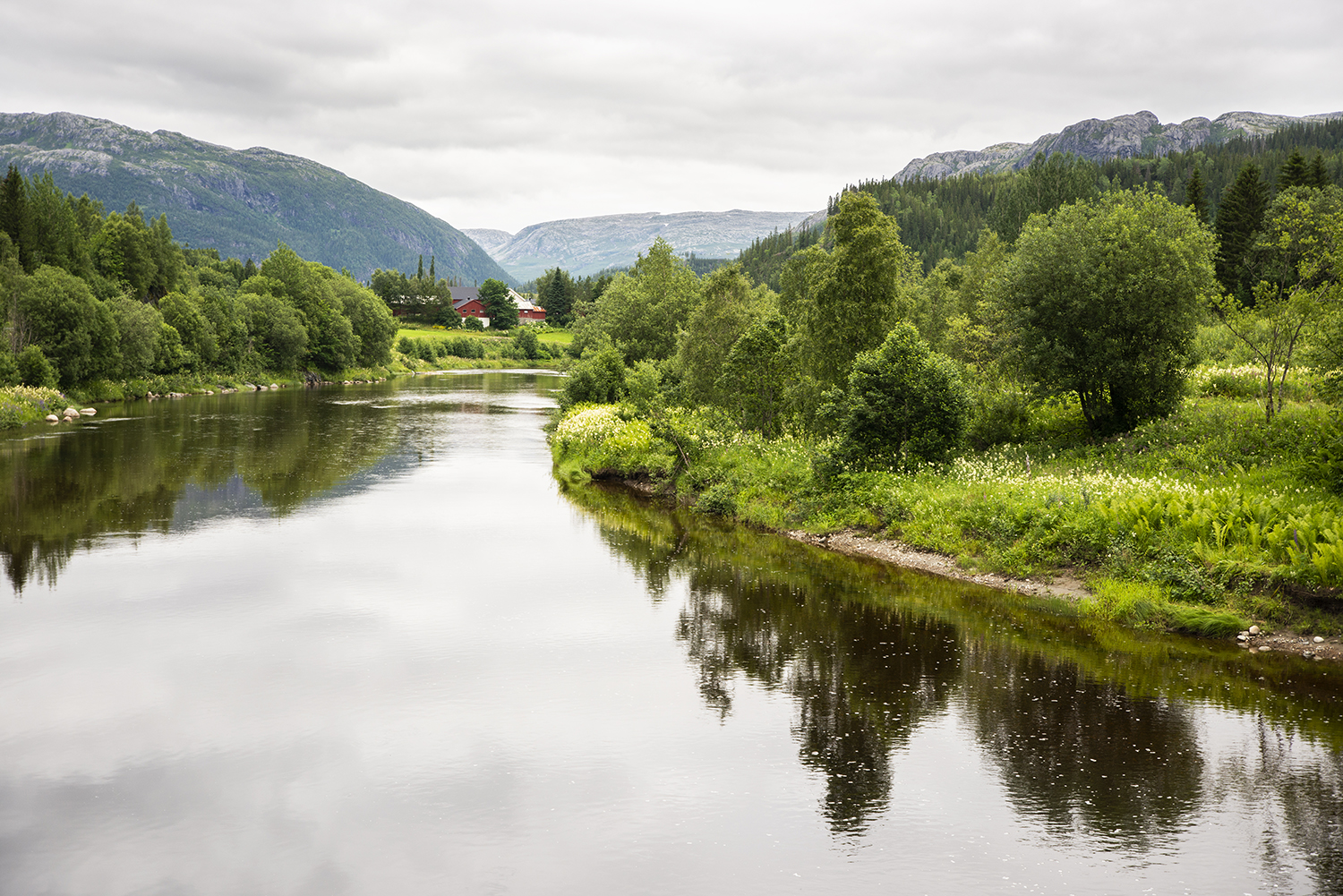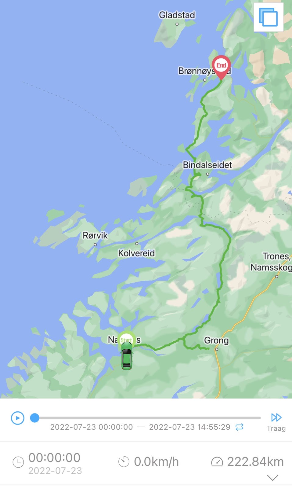 220723 Aanhoudend grijs, maar we houden het droog! We rijden vandaag het eerste deel van een schitterende route; de Helgeland kystriksveien. Het is opvallend rustig op de weg. De Amazon snort genoeglijk (echt, dat doet ie!) en neemt moeiteloos bocht na bocht. Zo mag het wel gaan.